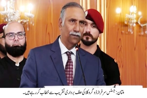 ملتان(قوم نیوز)چیف جسٹس اسلام آباد ہائیکورٹ جسٹس سرفرازڈوگرنے ملتان میں نومنتخب وکلا عہدیداروں کی حلف برداری تقریب سے خطاب کرتےہوئےکہاہےکہ میں ملتان کی مٹی سے ہوں، میں نےآج تک ملتان کا گھرنہیں