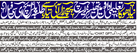 ملتان (سٹاف رپورٹر) روزنامہ قوم کی تعلیمی ریسرچ اور تھیسز میں ورڈ سپنرز اوراے آئی سوفٹ ویئرز کے ذریعے سرقہ پر مبنی منفرد اور معلوماتی خبر نے اعلیٰ تعلیم یافتہ پروفیسر حضرات اور معتبر تعلیمی حلقوں میں ایک صحت مند بحث کا بھرپور موقع فراہم کر دیا۔ اعلیٰ تعلیم یافتہ اور اہل دانش کی طرف سے اس پر مختلف قسم کے مثبت و منفی تاثرات دیکھنے میں ملے۔ چونکہ یہ ایک عوامی مسئلہ اور تعلیمی حلقے سے وابستہ چند اساتذہ کرام کی یہ ایک بڑی چوری تھی اور روزنامہ قوم نے ایک مفصل ریسرچ اور طویل روابط کے بعد یہ معاملہ اٹھایا تھا اس لئے اس ایشو کےبارے میں تعلیمی اور عوامی تاثرات کچھ اس طرح سامنے آئے جو خاصے دلچسپ رہے۔ لاہور سے تعلق رکھنے والے ایک ریسرچر کے مطابق جس طرح بندوق کے غلط استعمال پر تباہ کن نتائج ہو سکتے ہیں اسی طرح اے آئی کا ممکنہ اثر اس سے بھی زیادہ برا ہو سکتا ہے۔ درحقیقت اے آئی میں پورے معاشرے کو تعلیم اور تحقیق کو مختلف اشکال دینے کی صلاحیت پنہاں ہے لہذا ہم اے آئی کا استعمال اور انتخاب کیسے کرتے ہیں، یہی بات اہم ہے اس سے یہ طے ہو گا کہ کیا یہ صحیح یا غلط استعمال کے لیے ایک منفرد طاقت ہے۔ ایک معزز ریسرچر نے اسے جھوٹا پراپیگنڈہ قرار دیا۔ جبکہ گوجرانوالہ سے تعلق رکھنے والی ایک معزز ریسرچر ڈاکٹر سارہ نے اس خبر کو بالکل درست قرار دیا۔ اس ریسرچ کو جھوٹا پراپیگنڈہ قرار دینے والے ریسرچر ڈاکٹر فرحان کے مطابق ایک زرد صحافی اس کے لیے تمام سینئر اساتذہ، سپروائزرز اور وائیوا میں بیٹھے ریسرچ ماہرین حتیٰ کہ سینئر وی سی کو بھی قصور وار نہیں ٹھہرا سکتا جس پر ایک ریسرچر کے مطابق یہ زورد یا سرخ صحافی کو اس بارے میںعلم نہیں ہے کہ ورڈ اسپنرز اور چیٹ جی پی ٹی کا استعمال اب بہت عام ہے حتیٰ کہ چین سے پی ایچ ڈی کرنے والے ایک طالب علم نے بھی چیٹ جی پی ٹی استعمال کیا ہے اور دلچسپ امر یہ ہے کہ مذکورہ طالب علم نے اس خبر کو پڑھ کر قبول کیا اور اس کی تصدیق کی۔ ایک ریسرچر ڈاکٹر غلام غوث نے بھی اس کی تصدیق کی اور کہا کہ طلباء و طالبات اسے امتحانات، اسائنمنٹس اور پروجیکٹس میں دھوکہ دہی کے لیے بھی استعمال کر رہے ہیں۔ ڈاکٹر ہدایت اللّٰہ خان کے مطابق پہلے یہ بوٹی مافیا تھا، پھر کاپی پیسٹ، اور اب اے آئی سے مواد تیار کرنا شروع کر رکھا ہے اور مستقبل میں یہ کچھ اس سے بھی بڑھ کر ہو گا،اصل مسئلہ کوششوں کی کمی، اصلیت کی جستجو، اور شارٹ کٹ استعمال کرنا ہے۔ ایک ریسرچر کے مطابق اگر چائینہ میں کوئی پاکستانی اسطرح کے شارٹ کٹ استعمال کرتا ہے تو چائنہ کی ہائر ایجوکیشن کمیشن اور ان کے وائس چانسلرز کو مورد الزام ٹھہرانا چاہیے۔ ایک اور ریسرچر کے مطابق یہ ہماری غلطی ہے اور ہم صحافیوں کی رپورٹس کو زرد صحافت شائد اس لئے قرار دیتے ہیں کہ وہ حقائق کو بے نقاب کرتے ہیں۔ یہ وہ نکتہ ہے جو ہر عام آدمی کو معلوم نہیں۔ تو میں سمجھتا ہوں کہ یہ صحافی جس نے اس معاملے کو اٹھایا ہے، وہ عام صحافیوں سے کافی اعلیٰ صلاحیت کا حامل ہے اور یہ اس لیے کہ اس نے کچھ اندر کی بات کو بے نقاب کیا ہے۔ لیکن ہم اسے زرد صحافت ہی کہیں گے کیونکہ اسے ہمیں بے نقاب نہیں کرنا چاہئے تھا۔ ایک اور ریسرچر کے مطابق شاید مسئلہ خود اے آئی کا نہیں ہے، بلکہ اس کی اہمیت ہے جو ہم اپنی تعلیم میں اخلاقیات اور اخلاقی اقدار کو دیتے ہیں۔ یہ نہ تو بوٹی، نہ اے آئی کا مسئلہ ہے یہ بلکہ ذہنیت کا مسئلہ ہے جبکہ ایک ریسرچر کے مطابق بنیادی مسئلہ یہ ہے کہ ہم اپنے طلبہ کے تحقیقی مقالوں پر صحیح معنوں میں توجہ نہیں دیتے اس لیے طلبہ ان ذرائع کو استعمال کرتے ہیں اور طلبہ مکمل طور پر اس قسم کے چور راستے ڈھونڈنے پر مجبور ہوتے ہیں۔ ڈی ایچ اے صفہ یونیورسٹی کراچی سے تعلق رکھنے والے ریسرچر الیکٹریکل انجینیرنگ ڈاکٹر شہزاد اشرف کے مطابق تاحال ایچ ای سی ، حتی کہ انٹرنیشنل ریسرچ ایجنسیز نے بھی اے آئی ٹولز کے بارے میں آج تک کوئی پالیسی وضع نہیں کی۔چنانچہ اس کا انحصار ریسرچ پیپرز اور تھیسز کے ریویورز پر بھی تو ہوتا ہے۔