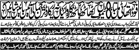 ملتان (زین العابدین سے)روزنامہ قوم کی جانب سے شائع ہونے والی فوڈ اتھارٹی ملتان کی کارکردگی پر تحقیقی خبر کے بعد محکمہ بالآخر حرکت میں آ گیا۔ خبر کے شائع ہوتے ہی فوڈ اتھارٹی نے رمضان المبارک سے قبل شہر بھر میں روزانہ کی بنیاد پر وسیع پیمانے پر کارروائیاں شروع کر دی ہیں، جو اس بات کا واضح ثبوت ہے کہ قوم کی نشاندہی نے ایک بار پھر عوامی مفاد میں مؤثر کردار ادا کیا ہے۔ذرائع کے مطابق، فوڈ اتھارٹی ملتان کی 8 ٹیمیں جو طویل عرصے سے محض کاغذوں میں متحرک دکھائی جا رہی تھیں اب باقاعدہ طور پر مارکیٹوں، ہوٹلوں، بیکریوں، اور گوشت و دودھ کی دکانوں پر انسپکشنز میں مصروف ہیں۔ ان کارروائیوں کے دوران حفظانِ صحت کے اصولوں کی خلاف ورزی پر متعدد وارننگز جاری کی گئیں جبکہ نمونوں کے لیبارٹری تجزیے کے لیے باقاعدہ ریکارڈ تیار کیا گیا ہے۔روزنامہ قوم کی خبر میں واضح کیا گیا تھا کہ محکمہ فوڈ اتھارٹی کی ٹیموں کی کارکردگی کے حوالے سے نہ تو جرمانوں اور وارننگز کا کوئی اعدادوشمار عوام کے سامنے لایا جا رہا ہے اور نہ ہی انسپکشنز کا باضابطہ ریکارڈ فراہم کیا جا رہا ہے۔ ادارے کے ترجمان یاسر عرفات نے بارہا استفسار کے باوجود تفصیلات فراہم کرنے سے گریز کیا۔ تاہم قوم کی خبر شائع ہونے کے بعد اچانک شہر میں فوڈ انسپکشن کی رفتار تیز ہو گئی ہے اورماہ رمضان میں روزانہ سینکڑوں انسپکشنز کیے جا رہے ہیں۔عوامی حلقوں نے روزنامہ قوم کے کردار کو سراہتے ہوئے کہا ہے کہ میڈیا کی بروقت نشاندہی اور مسلسل آواز اٹھانے سے انتظامیہ اور متعلقہ ادارے متحرک ہوئے ہیں۔ شہریوں کا کہنا ہے کہ اگر میڈیا اپنی سماجی ذمہ داری اسی طرح نبھاتا رہا تو عوامی مسائل کے حل میں خاطر خواہ بہتری ممکن ہے۔ادھر شہریوں نے فوڈ اتھارٹی سے مطالبہ کیا ہے کہ کارروائیوں کو صرف رمضان تک محدود نہ رکھا جائے بلکہ سال بھر اسی تسلسل سے جاری رکھا جائے تاکہ ناقص، غیر معیاری اور مضر صحت کھانوں کے خلاف حقیقی اور پائیدار نتائج حاصل کیے جا سکیں۔ملتان میں جاری یہ تازہ مہم اس بات کی علامت ہے کہ جب صحافت ذمہ داری سے کی جائے تو وہ صرف خبر نہیں، عمل کا آغاز بن جاتی ہے۔