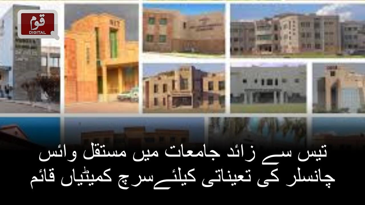 وزیر اعلیٰ پنجاب کی زیر صدارت صوبائی کابینہ کے چھٹے اجلاس میں بنائی گئی کمیٹیوں کا ٹاسک یونیورسٹیز کیلئے مناسب وائس چانسلرز کی تلاش تعیناتی کیلئےنئے سرے سے اشتہار، 65 سال سے زائد عمر کے امیدوارنا اہل ہونگے،وفاقی اداروں میں بھی مستقل وی سیز کی تعیناتی