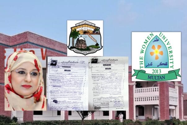 ملتان (سٹاف رپورٹر) خواتین یونیورسٹی ملتان کی 3 مختلف پیدائش کی تاریخیں رکھنے اور میٹرک کے داخلہ فارم کے مطابق 1 سال قبل ریٹائر ہونے کے باوجود مضبوط سیاسی تعلقات اور ہائر ایجوکیشن ڈیپارٹمنٹ کی مبینہ سرپرستی میں خواتین یونیورسٹی ملتان کی غیر قانونی وائس چانسلر