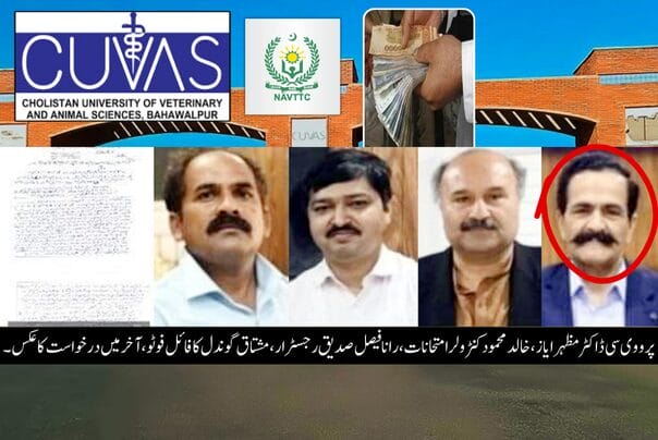 بہاولپور (کرائم سیل)چولستان ویٹرنری یونیورسٹی کے پرو وائس چانسلر ڈاکٹر مظہر ایاز نے دیگر ساتھیوں کے ساتھ مل کر قانون کی صریح خلاف ورزی کرتے ہوئے نیو ٹیک ( NAVTAC) کی جانب سے جاری کردہ فنڈز آپس میں تقسیم کر لئے جبکہ طالب علم سے فیس