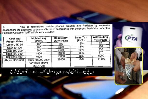 ملتان(قوم نیوز)حکومت نے بیرونِ ملک سے پاکستان آنے والے نئے اور استعمال شدہ موبائل فونز پر عائد کیے جانے والے ٹیکس اور ڈیوٹی کی تفصیلات جاری کر دی ہیں۔فیڈرل بورڈ آف ریونیو کی جانب سے قومی اسمبلی کی قائمہ کمیٹی برائے خزانہ میں دی گئی بریفنگ