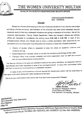ملتان (سٹاف رپورٹر) خواتین یونیورسٹی ملتان کی مبینہ جعلی تجربے کی حامل پرو وائس چانسلر و عارضی وائس چانسلر ڈاکٹر کلثوم پراچہ کی ہدایات کے مطابق چیف سکیورٹی آفیسر عرفان حیدر نامی سینئر ڈپٹی رجسٹرار ایڈمن کی جانب سے نکالے گئے نوٹیفکیشن کے بعد چیف سکیورٹی آفیسر عرفان حیدر نے گارڈز کے ساتھ مل کر خواتین پروفیسرز اور ایڈمن سٹاف کے ساتھ بد تمیزی شروع کر دی۔ جس پر جب ٹیچرز اور سٹاف نے چیف سیکورٹی آفیسر کو شکایت کا بولا تو چیف سیکورٹی آفیسر عرفان حیدر کا کہنا تھا کہ ان کو عارضی وائس چانسلر ڈاکٹر کلثوم پراچہ کی مکمل حمایت حاصل ہے۔ گزشتہ روز سابقہ پرو وائس چانسلر ڈاکٹر شگفتہ حسین جو کہ یونیورسٹی کی واحد پروفیسر آف ایمریٹس کے عہدے پر فائز ہیں ان کو بھی لیٹ آنے کی پاداش میں عارضی وائس چانسلر ڈاکٹر کلثوم پراچہ کی ہدایات کے مطابق یونیورسٹی کے مین گیٹ پر روک لیا گیا جس پر پروفیسر ڈاکٹر شگفتہ حسین نے معذرت کر کے اگلی بار ٹائم پر آنے کا وعدہ کیا تو ان کو اندر آنے دے دیا گیا اور ان کی ویڈیو ثبوت بمعہ درخواست عارضی وائس چانسلر ڈاکٹر کلثوم پراچہ کو مہیا کر دی گئیں۔ اسی طرح ایڈمن آفیسر کامران رجوانہ کے ساتھ بھی گارڈز نے لیٹ آنے پر بد تمیزی کی تو کامران رجوانہ نے اپنی موٹر سائیکل مین گیٹ کے بیرئیر پر لگا دی کہ اگر مجھے اندر نہ جانے دیا تو کوئی بھی اندر نہیں جائے گا۔ جس پر مین گیٹ پر رش کی صورتحال پیدا ہو گئی۔ بعد ازاں سینئر سٹاف کی مداخلت سے رفع دفع کر کے ایڈمن آفیسر کامران رجوانہ کو اندر جانے دیا گیا۔ اسی طرح ماس کمیونیکشن ڈیپارٹمنٹ کی فی میل ٹیچر ڈاکٹر سعدیہ طالب کو 10 منٹ لیٹ آنے پر چیف سیکورٹی آفیسر نے کہا کہ آپ رکشے سے اتر جائیں ۔ 9 بجے کے بعد رکشہ اندر نہیں جائے گا۔ جس پر ڈاکٹر سعدیہ طالب کو سب سٹاف اور گارڈز کے سامنے نہایت شرمندگی کا سامنا کرنا پڑا مگر چیف سیکورٹی آفیسر عرفان حیدر نے الٹا ان کی شکایت عارضی وائس چانسلر سے کر دی جس پر بد تمیزی کرنے والے چیف سیکورٹی آفیسر کے خلاف کاروائی کی بجائے عارضی وائس چانسلر ڈاکٹر کلثوم پراچہ نے ڈاکٹر سعدیہ طالب کو ڈانٹ دیا۔ ایک ٹیچر نے نام ظاہر نہ کرنے کی شرط پر بتایا کہ ویڈیو بنائے جانے سے ہماری پرائیویسی خراب ہوتی ہے اور یونیورسٹی کی ایک خاتون ٹیچر چیف سیکورٹی آفیسر عرفان حیدر اور عارضی وائس چانسلر ڈاکٹر کلثوم پراچہ کے خلاف workplace harassment کے تحت کاروائی کے لیے درخواست صوبائی محتسب کو بھجوا چکی ہیں۔ یاد رہے کہ چیف سیکورٹی آفیسر عرفان حیدر نے نکالے گئے نوٹیفکیشن میں اپنا عہدہ سینئرڈپٹی رجسٹرار تحریر کیا ہے جبکہ یونیورسٹی ایکٹ میں سینئر ڈپٹی رجسٹرار کا عہدہ موجود ہی نہ ہے۔ اور ان کی غیر قانونی تعیناتی پر آڈٹ پیرا بھی موجود ہے۔ یاد رہے کہ اسلامیہ یونیورسٹی بہاولپور کے سیکورٹی انچارج کے موبائل کے فرانزک کے دوران بہت سی ٹیچرز اور طالبات کی ویڈیوز اور تصاویر برآمد ہو چکی ہیں۔ اس بارے میں موقف کے لیے جب خواتین یونیورسٹی ملتان کی پی آر او سے بات کی گئی اور ان سے پوچھا گیا کہ 1. ویڈیو ریکارڈنگ کی اجازت ڈاکٹر کلثوم پراچہ نے دی؟ 2. کیا ڈاکٹر کلثوم پراچہ بھی وقت 9 سے 3:30 کی پابندی کر رہی ہیں۔ 3. کیا خواتین پروفیسرز سے بد تمیزی کرنے والے چیف سیکورٹی آفیسر کے خلاف کوئی ایکشن لیا گیا؟ تو ان کا موقف تھا کہ وائس چانسلر پروفیسر ڈاکٹر کلثوم پراچہ کی جانب سے کسی بھی قسم کی ویڈیو ریکارڈنگ کی اجازت نہیں دی گئی۔انہوں نے واضح کیا کہ تدریسی و انتظامی ماحول کو شفاف رکھنے کے لیے یونیورسٹی موثر اقدامات کے مطابق کام کر رہی ہے۔ وقت کی پابندی کے حوالے سے بتایا گیا کہ وائس چانسلر ڈاکٹر کلثوم پراچہ خود بھی اس اصول کی پابندی کرتی ہیں۔ وہ روزانہ صبح 9 بجے شعبہ اسلامیات میں تدریسی فرائض انجام دیتی ہیں اور اس کے بعد وائس چانسلر آفس میں آ کر شام تک موجود رہتی ہیں تاکہ انتظامی معاملات کی براہِ راست نگرانی کر سکیں۔ یونیورسٹی میں خواتین پروفیسرز سے مبینہ بدسلوکی کے حوالے سے اٹھائے گئے سوال پر یونیورسٹی انتظامیہ ن